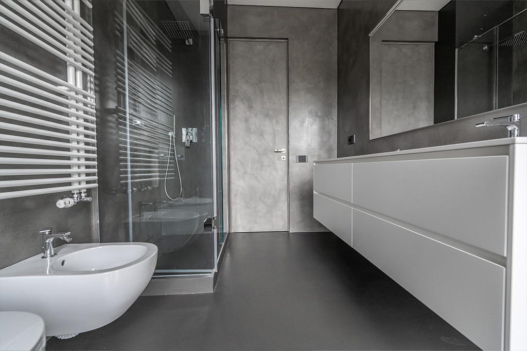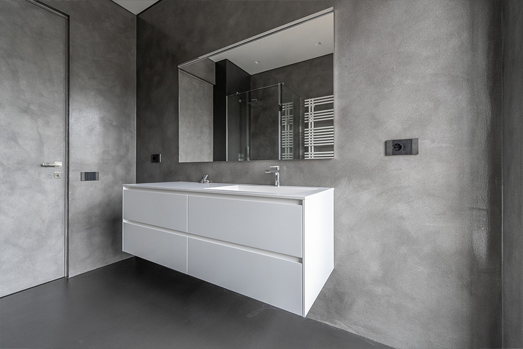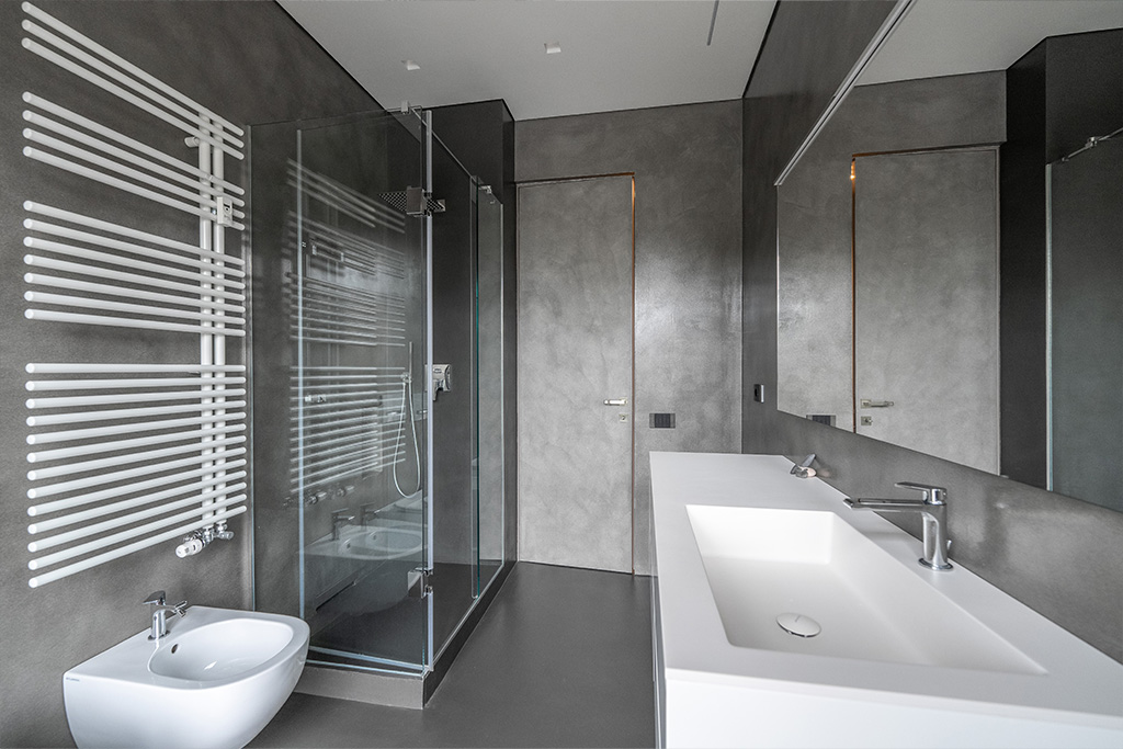 Superfici continue in Resina come rivestimento per un alloggio ultramoderno.